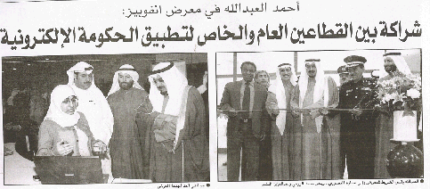 | Mr. Jasem Al-Mutawa in a local newspaper covering the opening of Kuwait Info Biz by Sheikh / Ahmed Al-Abdullah Al-Ahmed Al-Sabah Ministries of Communication & Health |